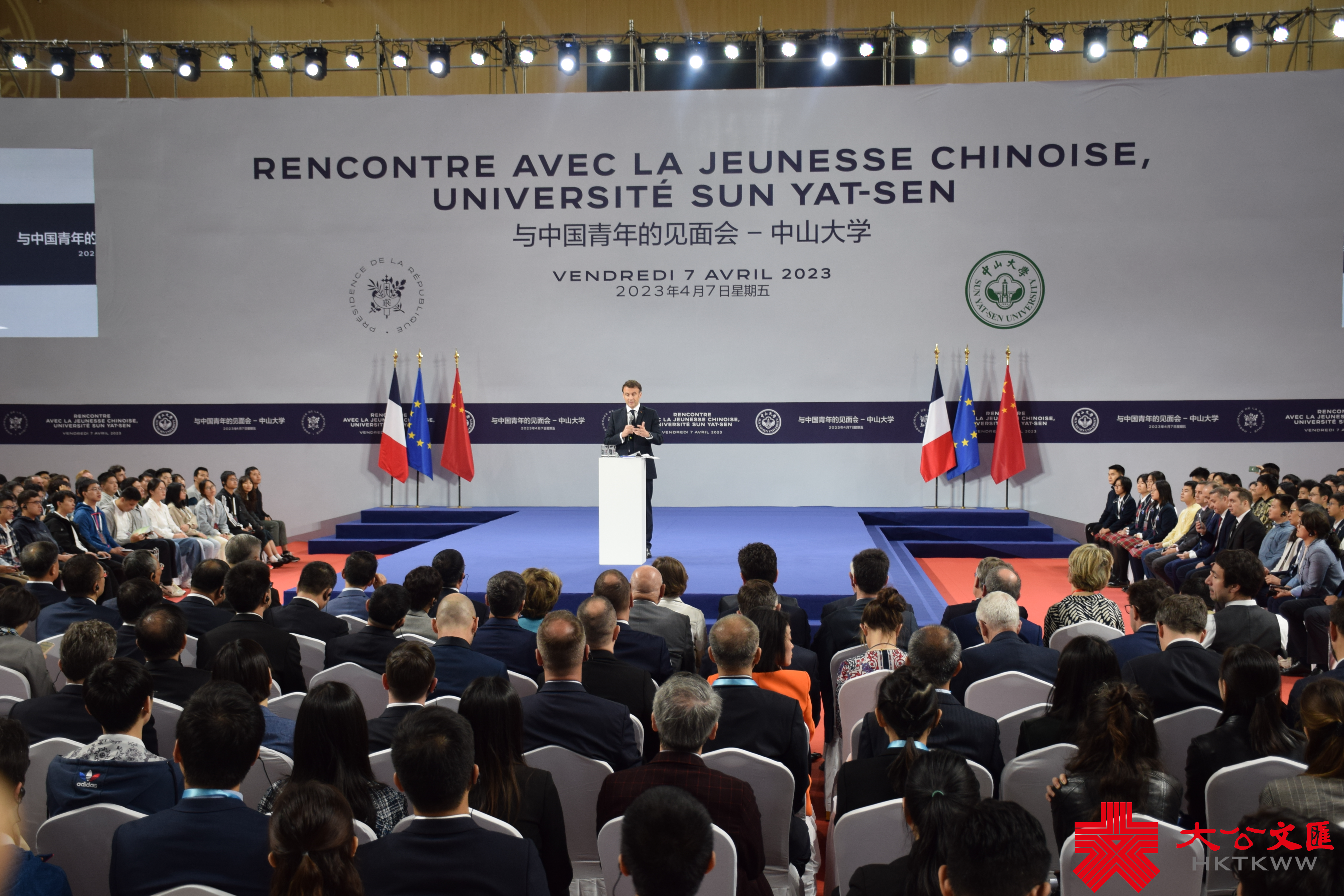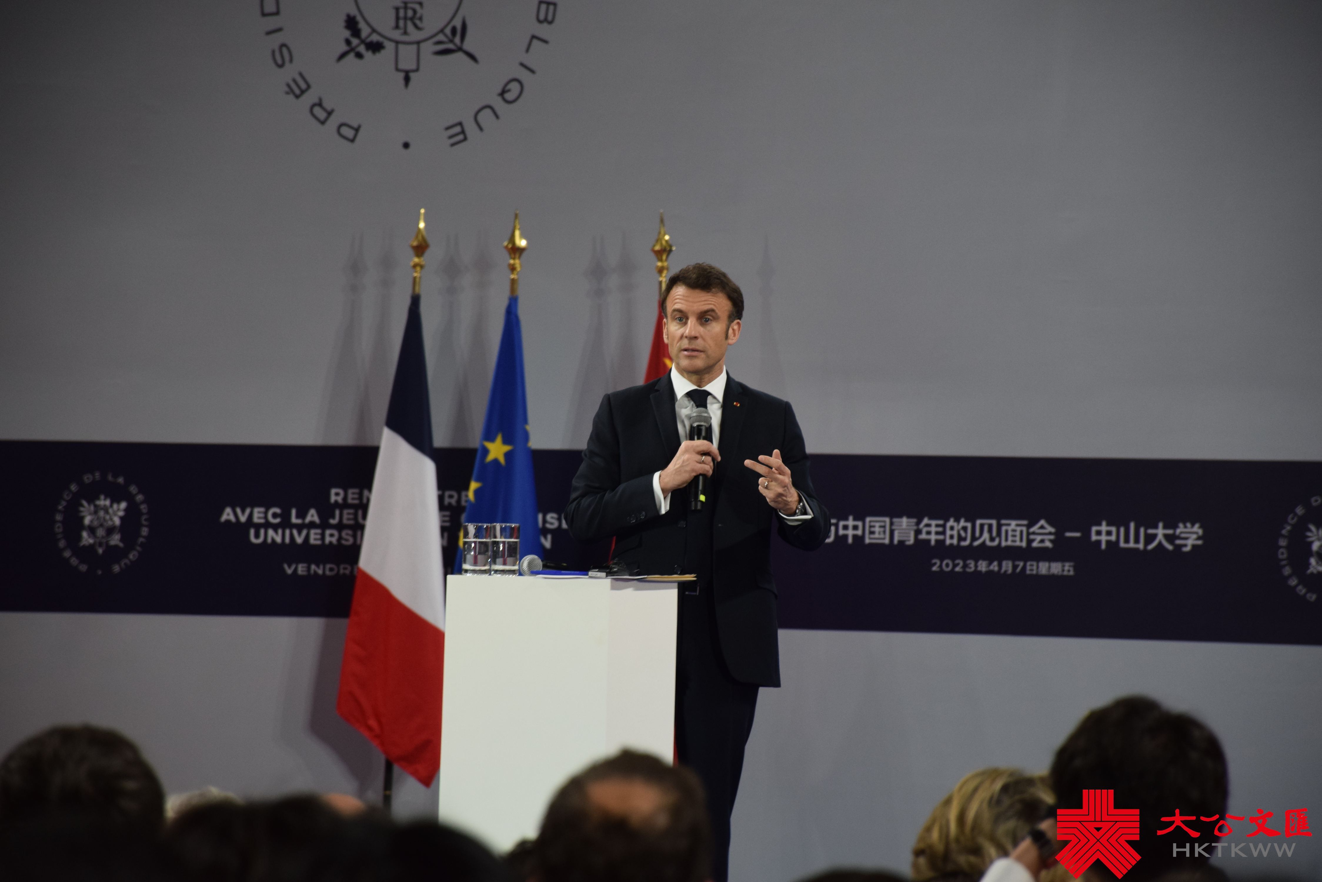 (大公文匯網 記者 盧靜怡、帥誠)今日(7日)下午,在對中國進行國事訪問期間,法國總統馬克龍到中山大學參與一場「與中國青年的見面會」為題的交流活動。馬克龍一上台就用法文、普通話和粵語和大家打招呼,非常親民。他說,這次並非發表演講,而是希望和大家交流。見面會舞台三面都有同學環繞,整個交流過程中,馬克龍不時整個身子側過去與同學們分享自己的觀點。這一小細節拉近了馬克龍與同學們的距離。