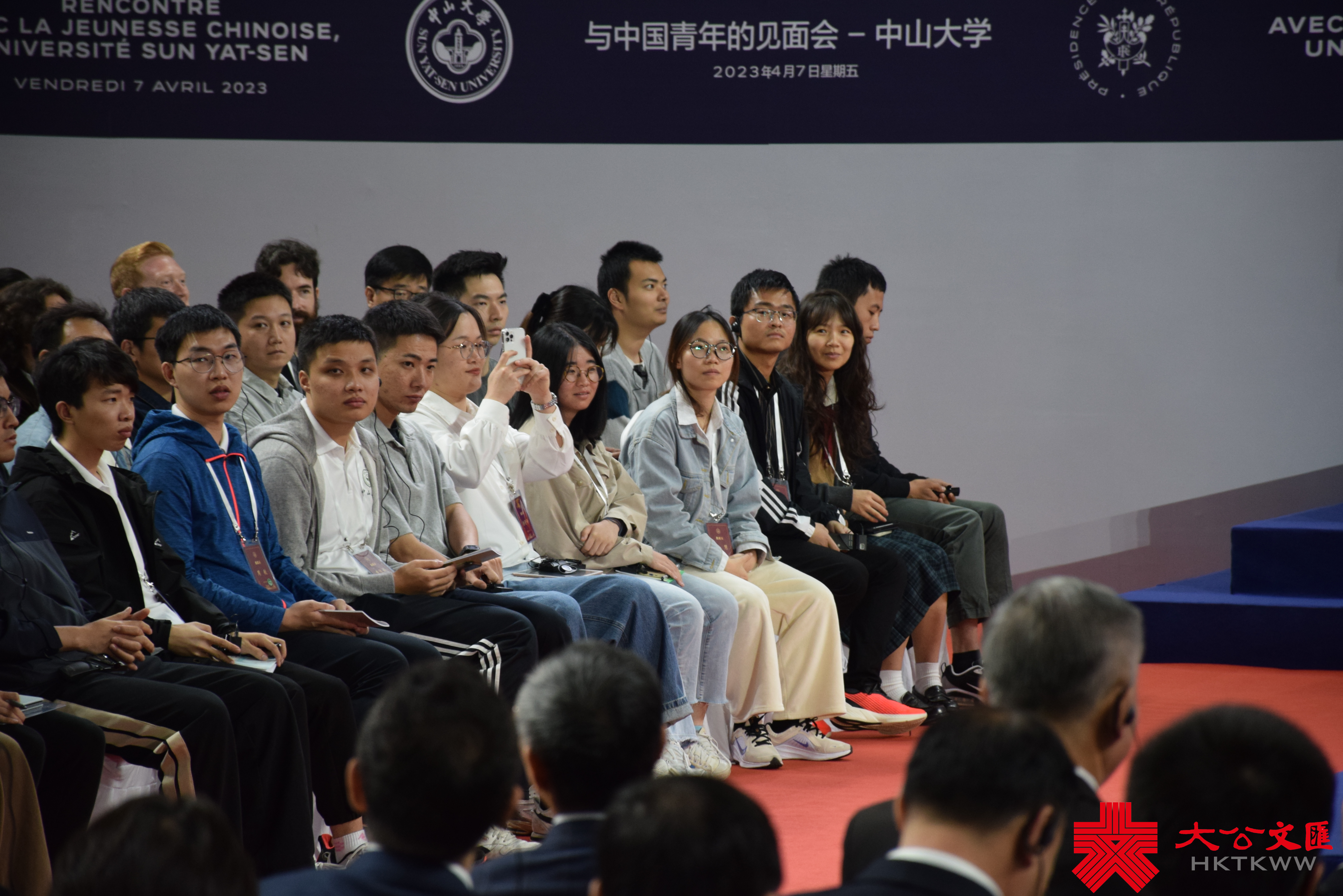 中山大學研究生二年級的孫佳坤同學當時就坐在過道旁邊。馬克龍經過時,他告訴馬克龍自己正在學法語,馬克龍聽到之後特別停下腳步,輕輕拍拍他的肩膀,對孫同學說加油。「覺得馬克龍總統很親切、隨和。」另一名李同學是現場提問者之一,她提到關於AI的話題,問題比較長,自言提問過程十分緊張。但馬克龍一直耐心聽完並做筆記,回答也非常詳盡,給她很大鼓舞:「我覺得馬克龍總統很有耐心也非常有幽默感。」