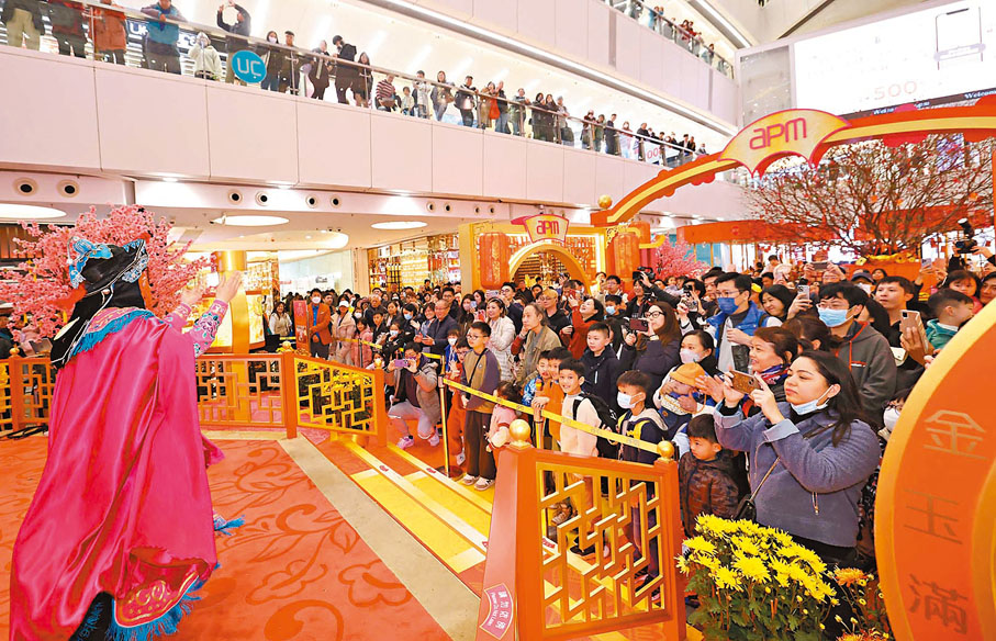 農曆新年期間,新鴻基地產旗下15大商場推出特色賀年主題裝置、賀年市集、年三十晚倒數派對活動,又推出如倍數積分等消費獎賞,濃厚年味帶動銷情,2月3日至2月13日共11天春節黃金檔期人流較去年升20%,生意額較去年升約15%。當中,以衣履及金飾生意最受惠。新春裝身或送禮意慾推動銷情;而新春假期後緊接情人節,令珠寶金飾更受捧,料生意額按年增20%。餐飲方面,除公司、團體復辦大型春茗宴飲活動外,不少市民樂於出外與家人、親友團拜、大年初二外出享用開年飯,盆菜及特色賀年美食禮盒大賣,刺激食肆生意按年升至少15%。