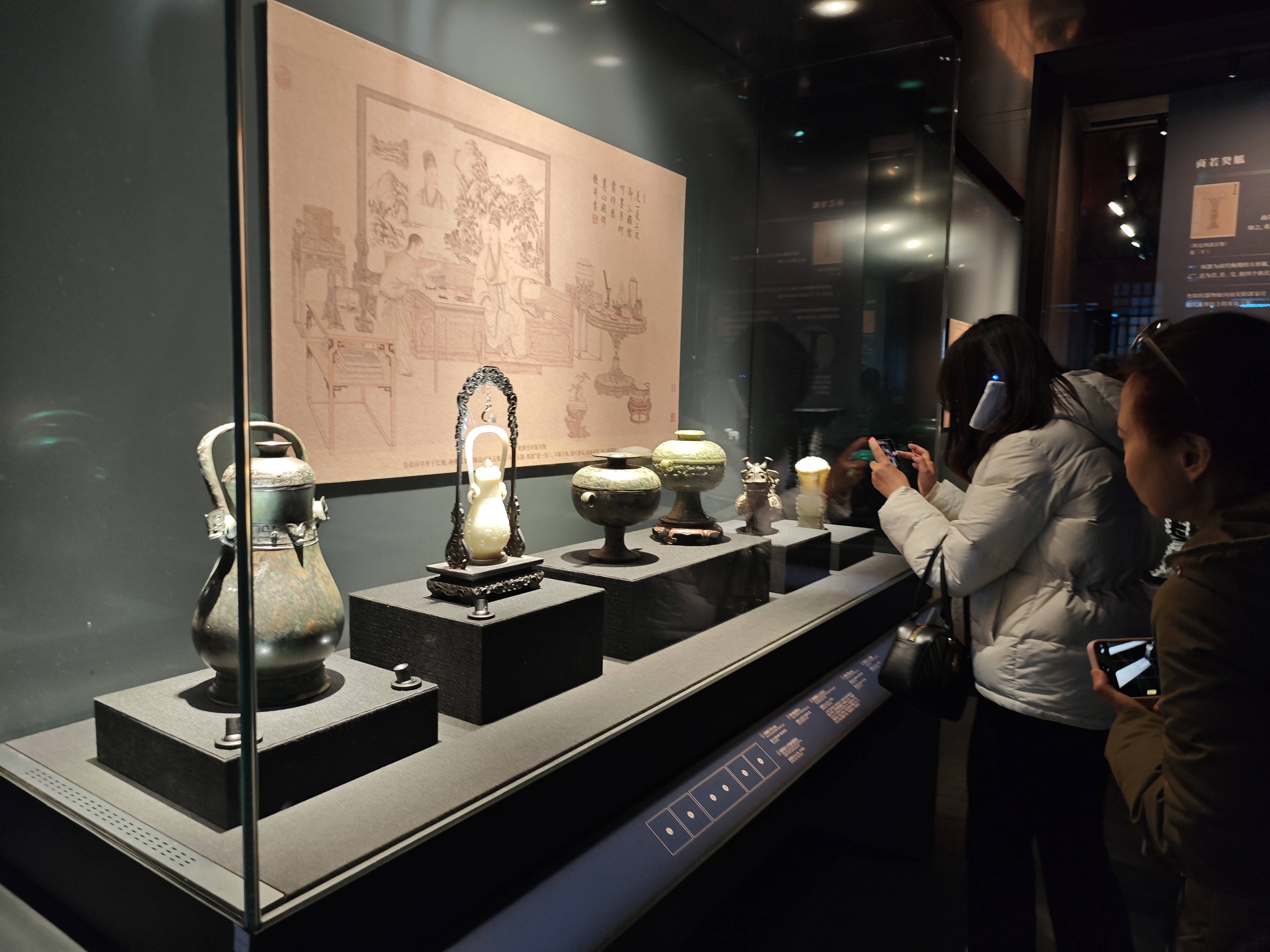 琴、棋、書、畫是深得中國古代文人雅士推崇的修身養性兼消遣的藝術,具有非常悠久的歷史,歷代文獻均有記載。清宮舊藏所見有玉圍棋、玉象棋、玉雙陸等,彌足珍貴。展覽展出的一組圍棋子分別以白玉、碧玉製成,均呈扁圓形。共371粒,其中白玉棋子185粒,碧玉棋子186粒,分別置於描金漆罐內,罐上以纏枝花卉紋為地,開光內飾蘭、菊等花葉紋。白玉棋子玉色潔白,碧玉棋子玉色呈韭綠,對弈時,白、綠兩色棋子相得益彰,頗為清新雅緻。