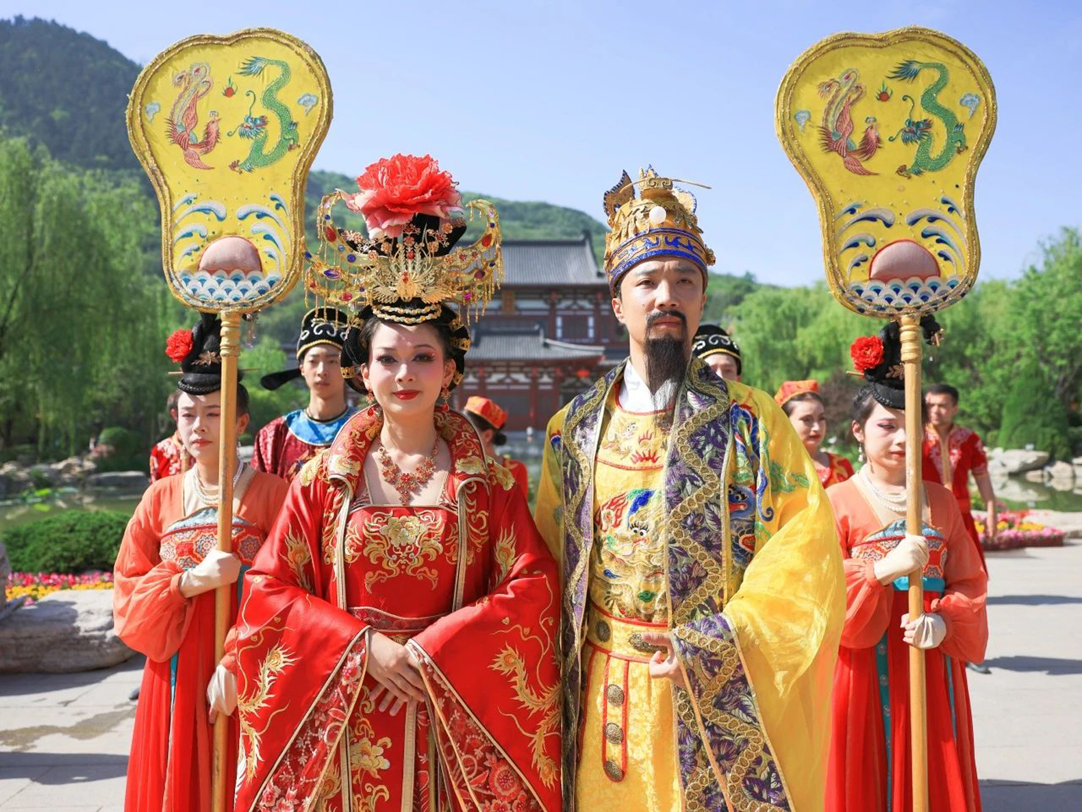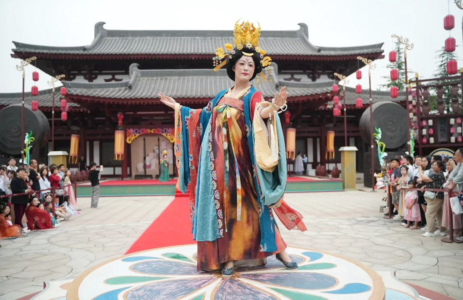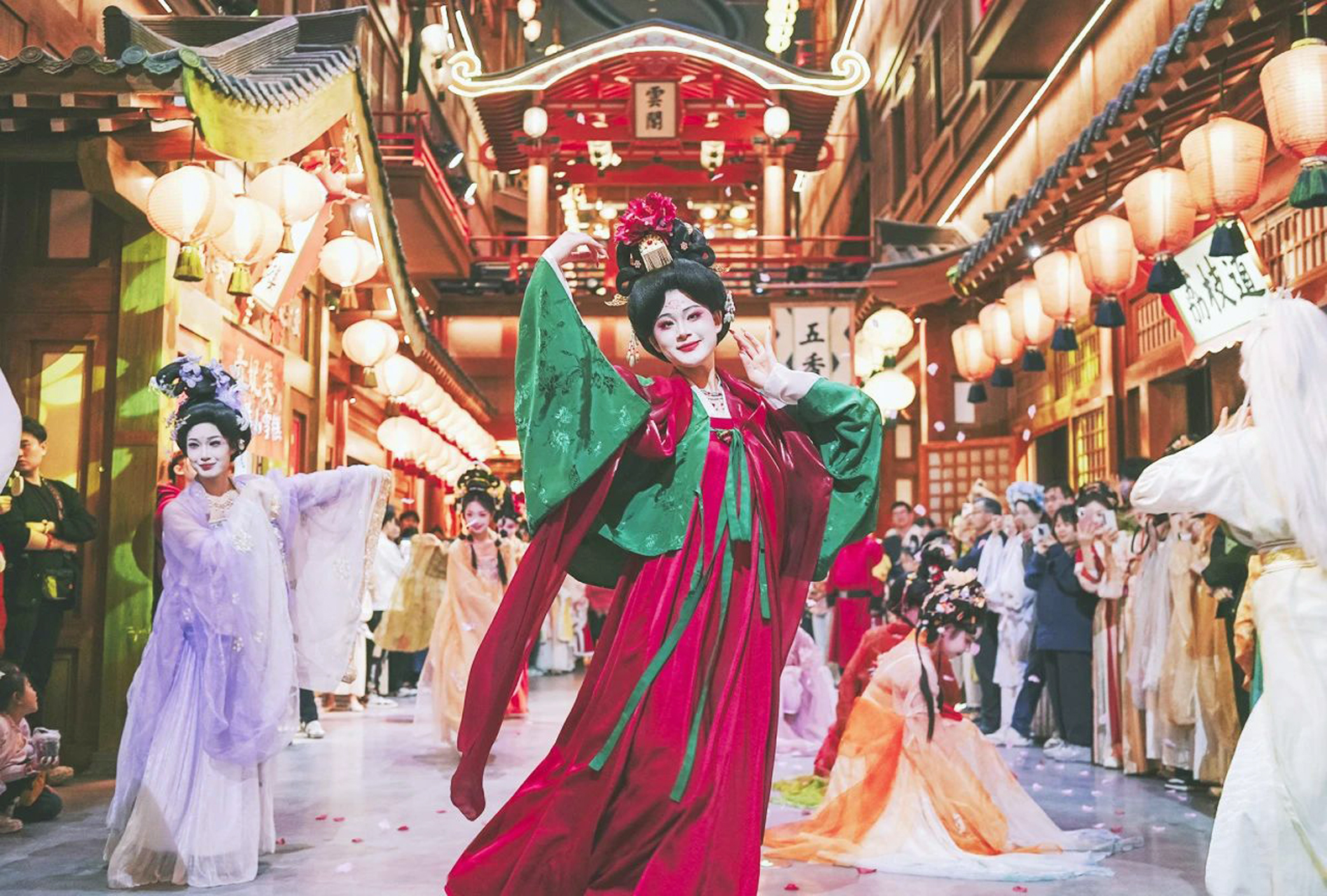 「快看,唐仕女從畫中走了出來。」「五一」假期首日,中午時分位於大雁塔之南的大唐不夜城遊人如織,突然隨着一聲清脆的琵琶聲響起,一幅「古畫」瞬間「動」了起來,大唐不夜城秒變「長安」。