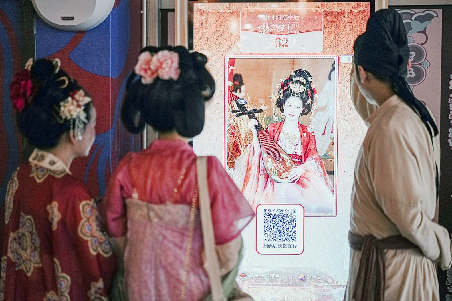 假期5天來,在長安十二時辰主題街區聯合華為推出的「AI大唐」數字穿越項目前,總是會排起長長的隊伍。據介紹,該項目通過AI換臉技術,將人物肖像與街區唐風場景、NPC(「非遊戲玩家」)互動、演藝節目完美融合。遊客只需上傳一張照片,便能快速生成自己專屬的唐風寫真以及漫步長安市井、與李白對飲、與花魁共舞的定製VLOG,瞬間穿越。