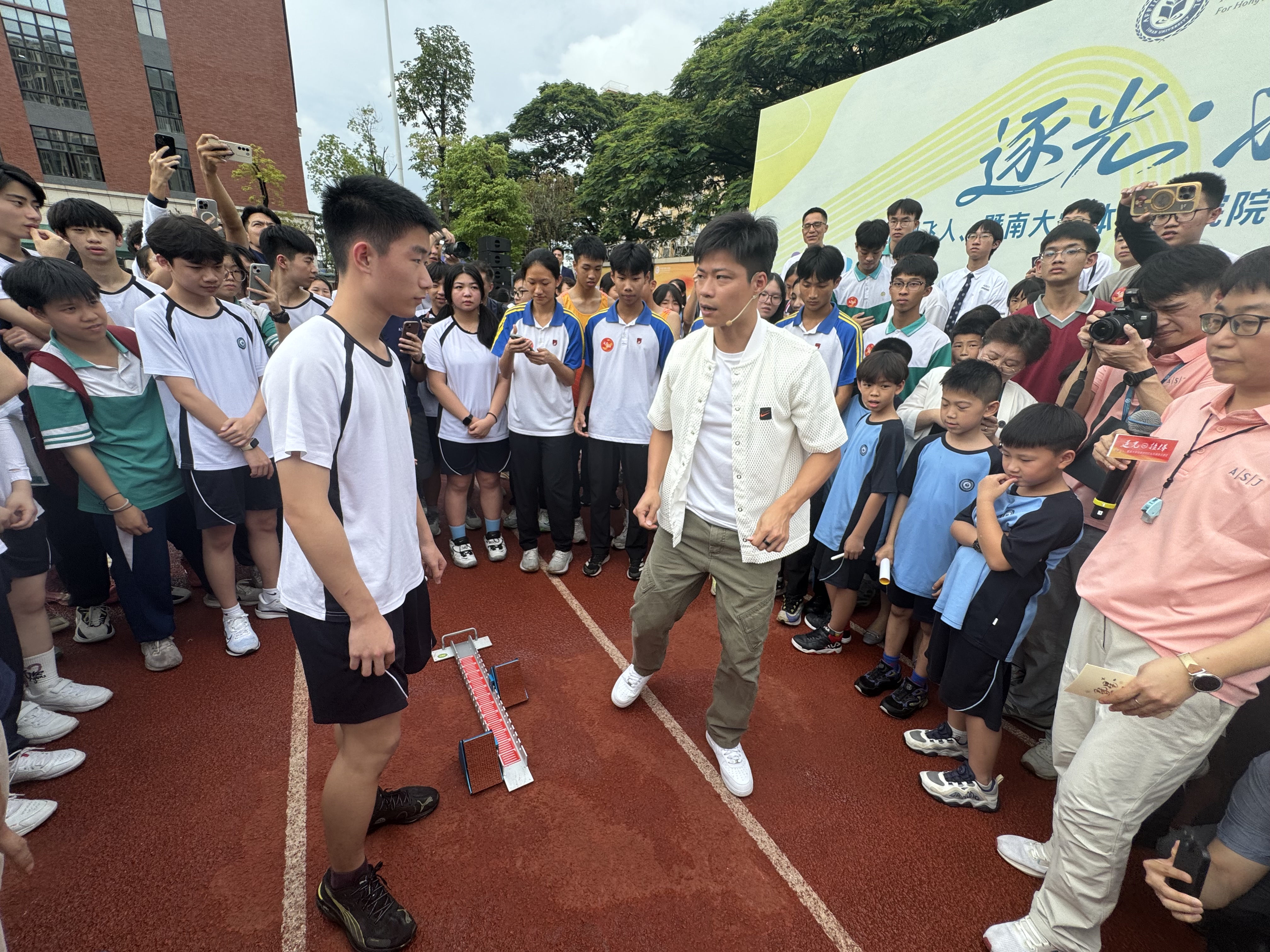 「當蘇教授就在面前的時候,我感到非常激動。」佛山暨大港澳子弟學校高二學生黎家成說,蘇炳添堅持到底的體育精神,即使作為老將依然還能創造新的紀錄,給自己的學習生活帶來了很大的動力。