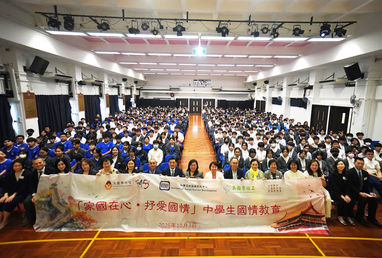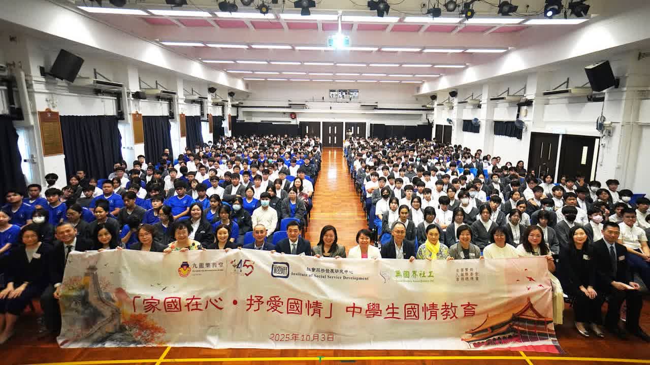 由社會服務發展研究中心、九龍樂善堂及無國界社工聯合主辦的「家國在心•抒愛國情」中學生國情教育活動,10月3日(星期五)下午在樂善堂王仲銘中學禮堂圓滿舉行。活動吸引逾600名中四學生及教師參與,現場氣氛熱烈,反應積極。