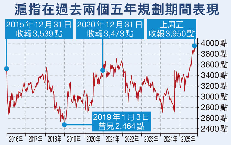同濟大學經濟與管理學院教授阮青松亦對香港文匯報說,四中全會公報中的重要提法,將構成「十五五」期間資本市場的主線邏輯。科技創新與新質生產力成為核心政策抓手,未來五年政策面支持有望更聚焦於硬科技、先進製造、數字經濟、人工智能與資訊基礎設施等領域,A股市場的半導體、算力、工業母機、高端裝備製造,以及H股市場的中資科技龍頭與互聯網平台企業,均有望迎來成長機會。