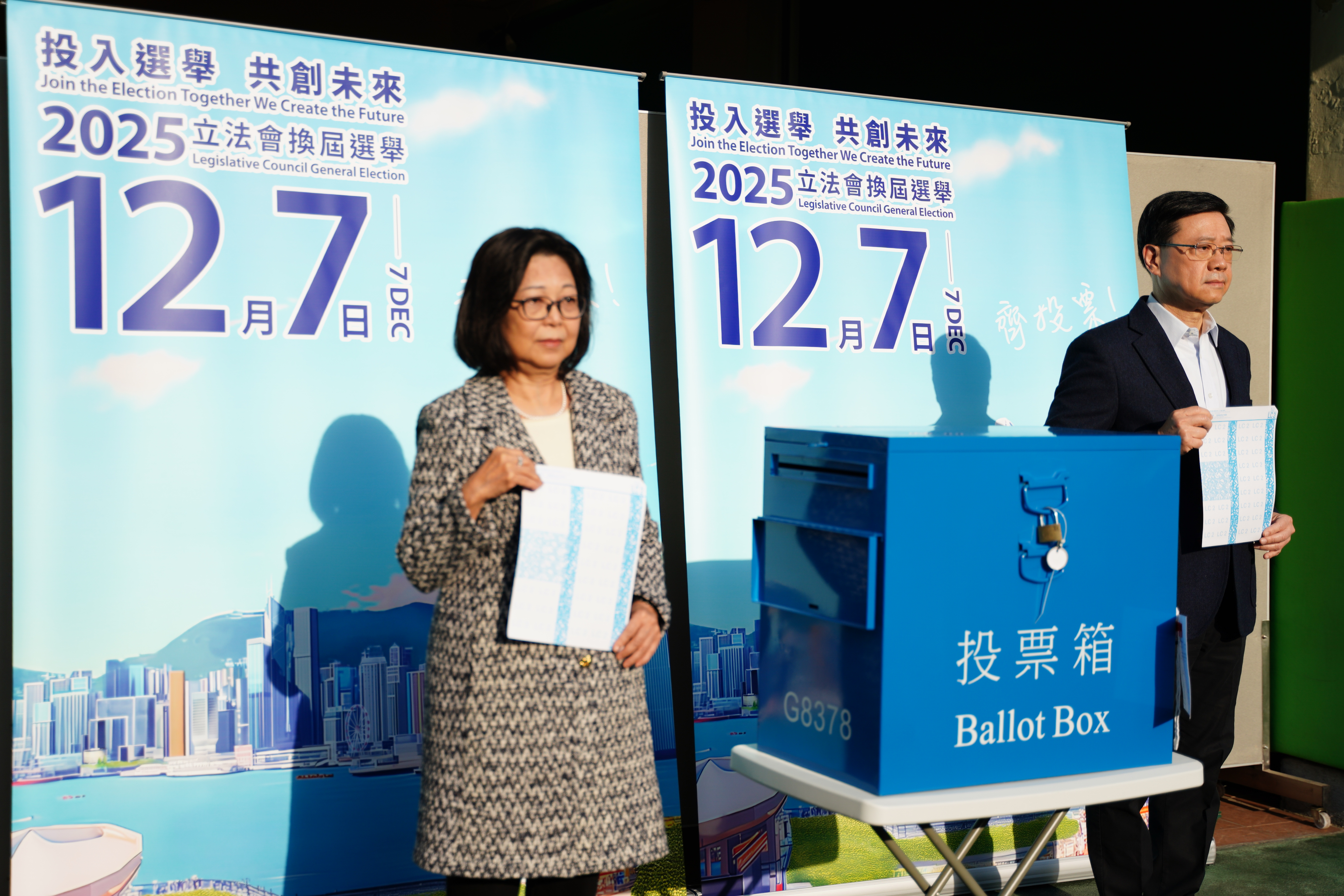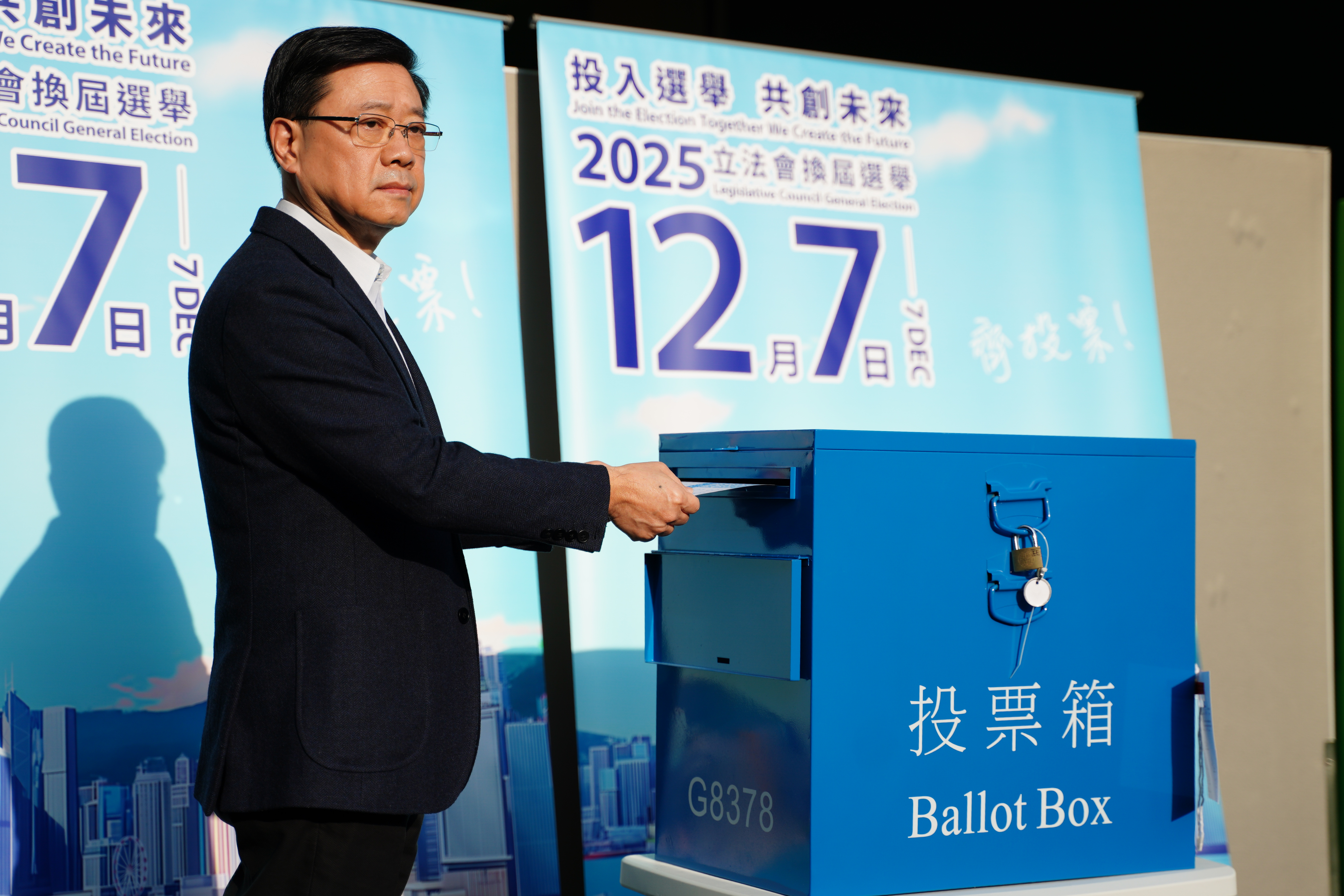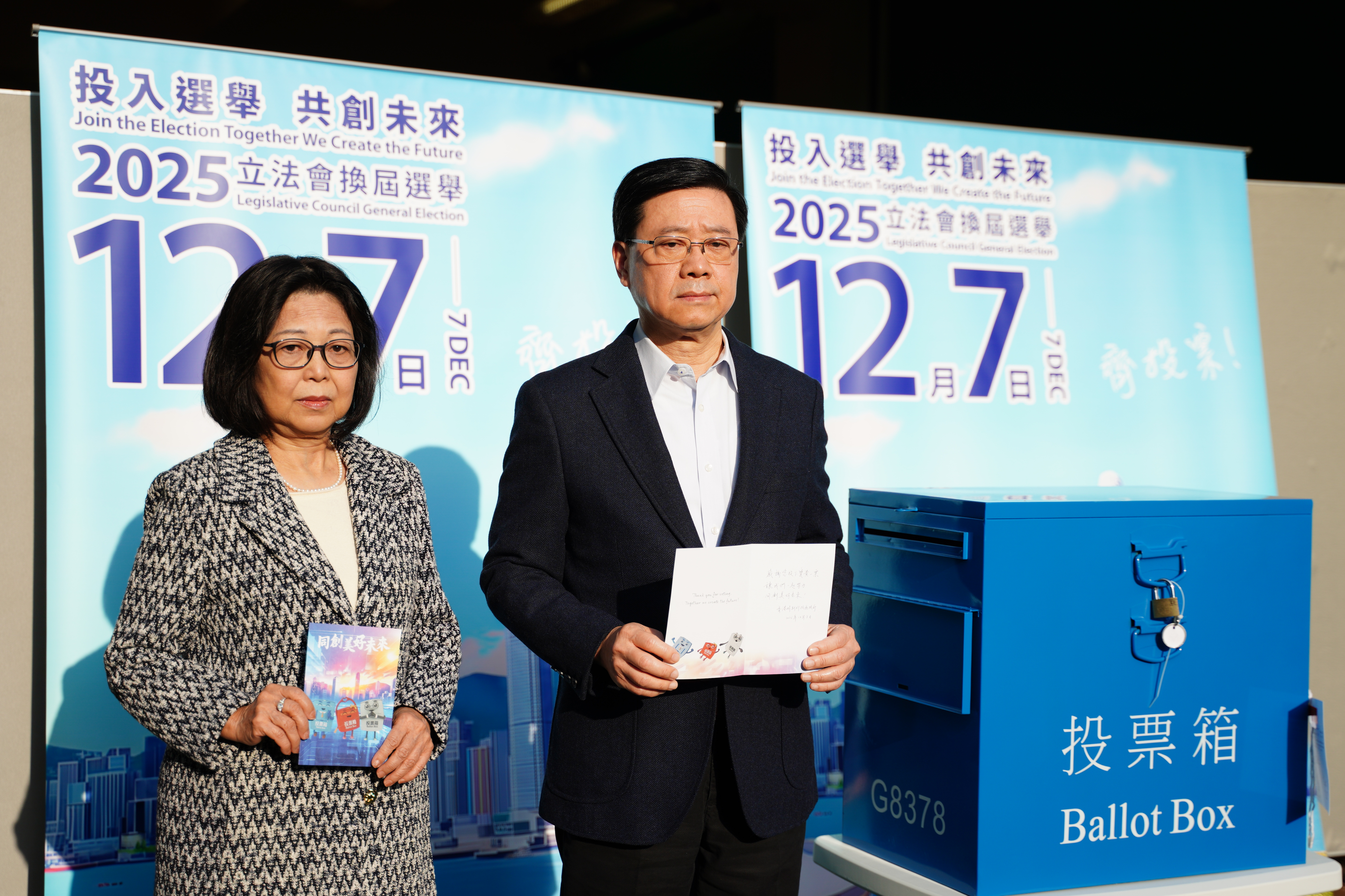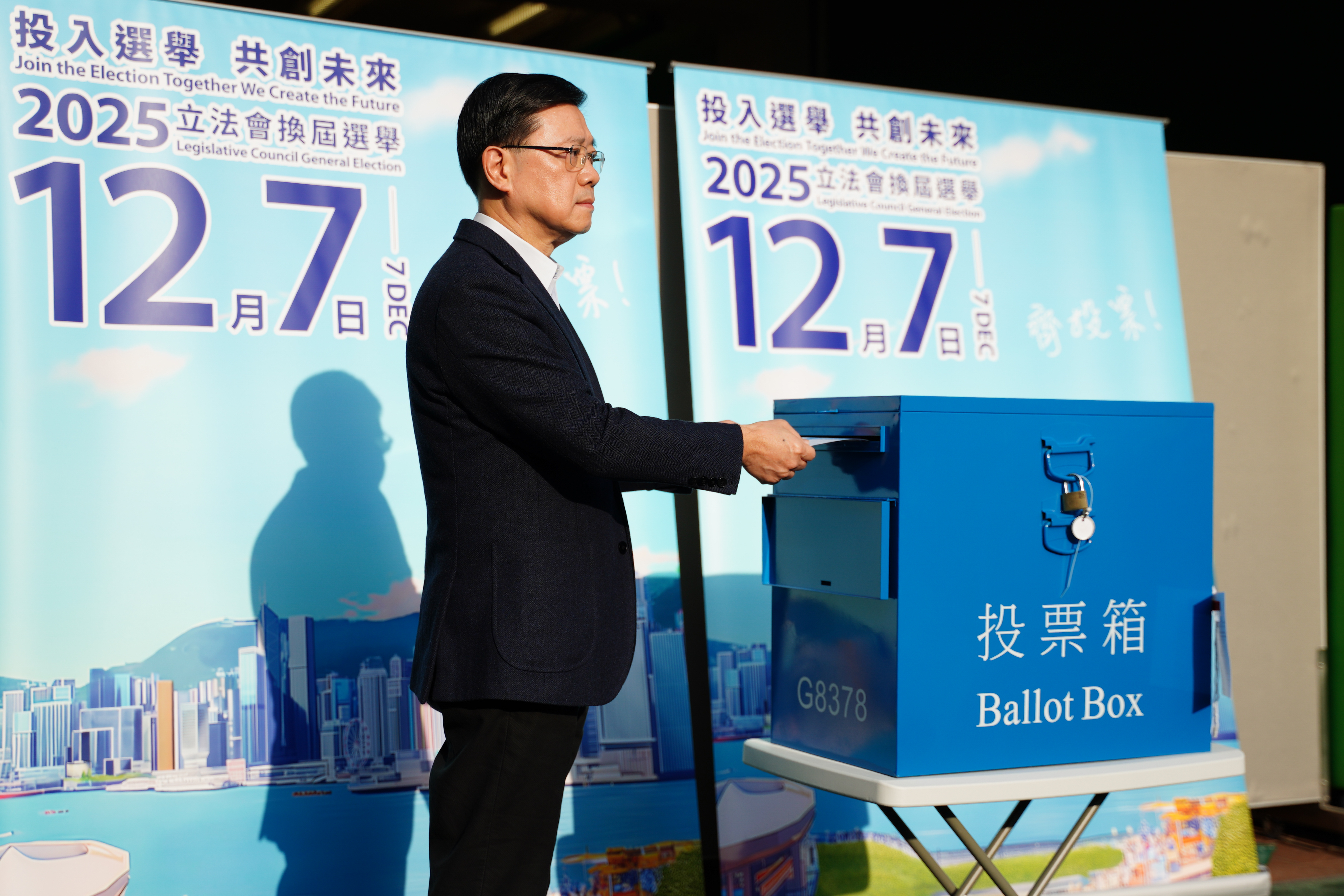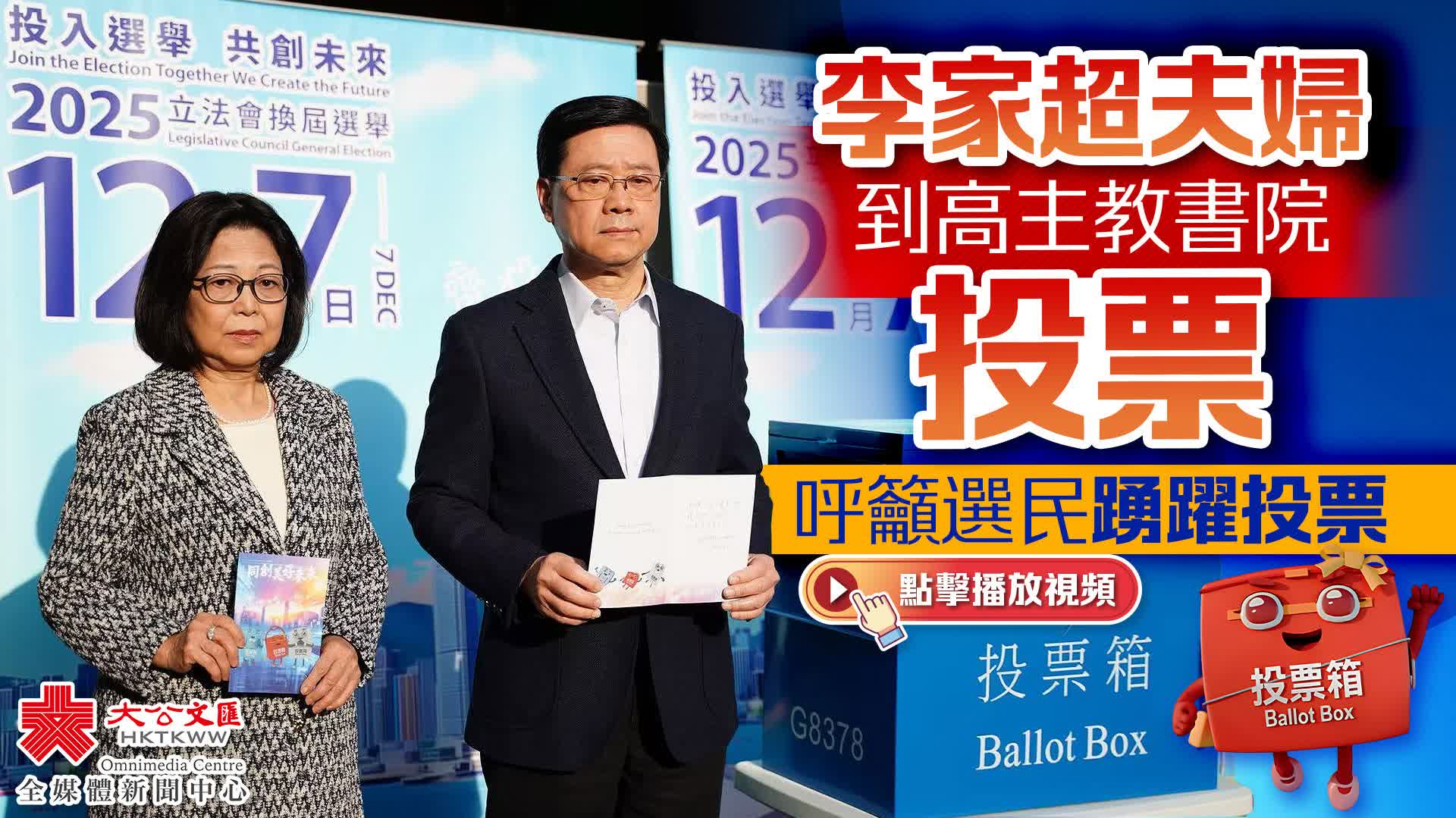 大公文匯全媒體報道,2025年立法會換屆選舉今日(12月7日)舉行,投票時間提早至7時半開始,延至晚上11時半結束。今早8時許,行政長官李家超同太太到高主教書院投票站投票。