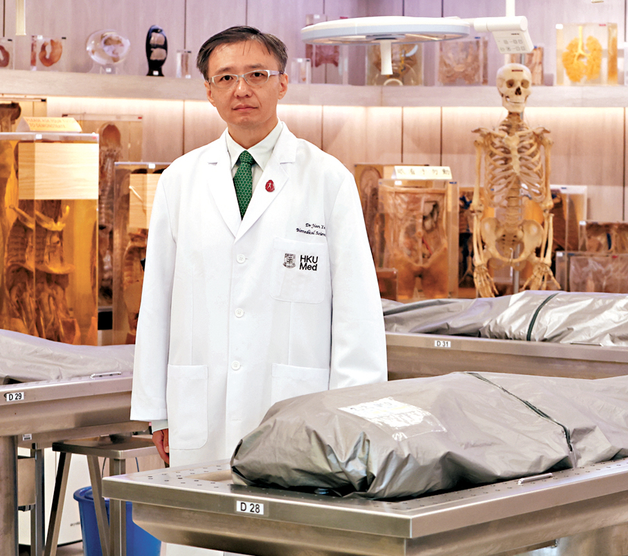 在醫學院的解剖學教室裏,防腐師的角色十分重要,他們職責廣泛:從接收與清潔遺體、修補與防腐,到配合教學進度準備標本、支援教學與器材操作。其中,港大醫學院生物醫學學院技術經理、遺體捐贈計劃防腐師黃永亮(Patrick),中學畢業後即投身港大,至今逾30年,服務過不同部門;約40歲時正式轉職為防腐師,投身這個領域17年。