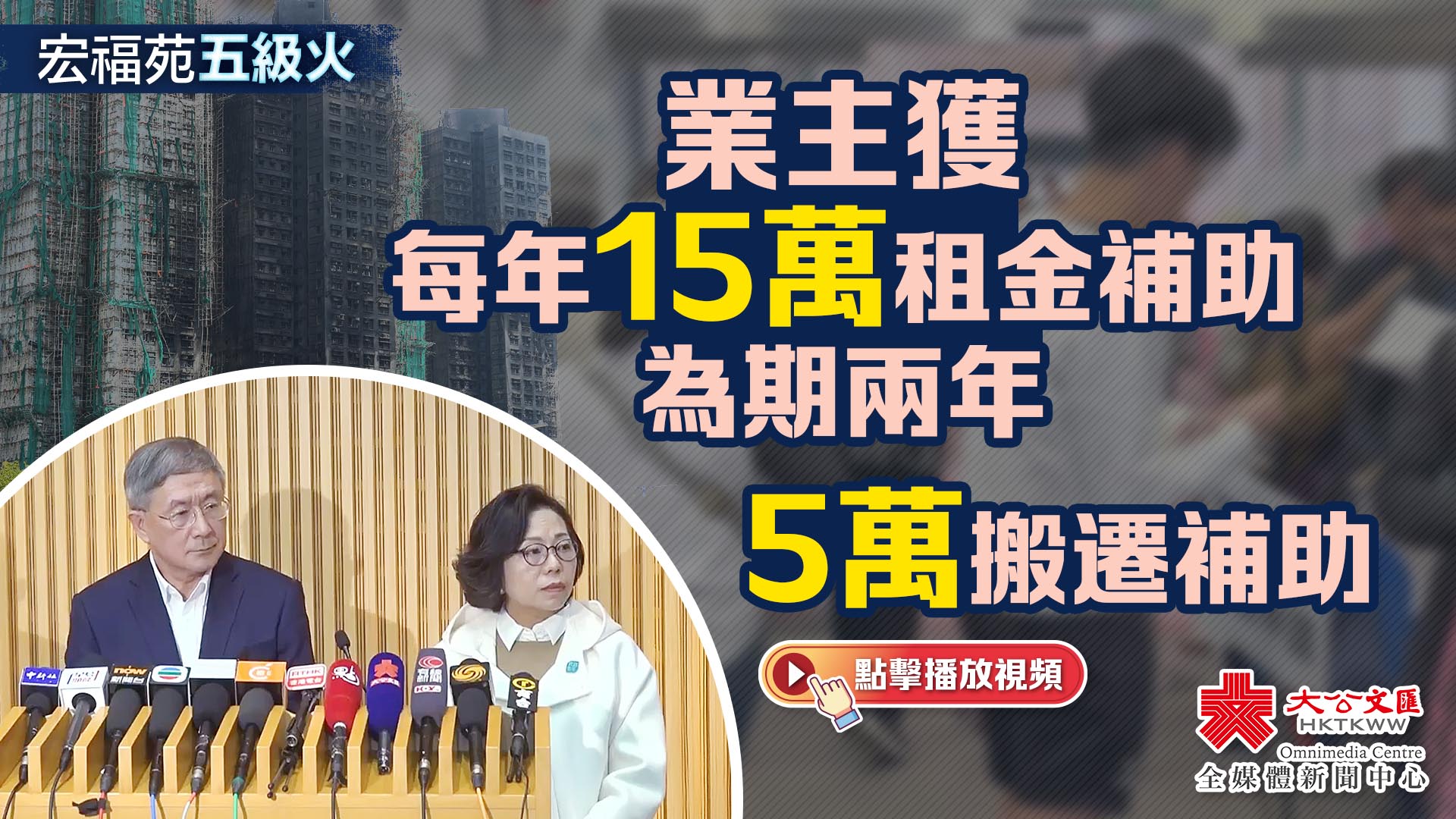 卓永興介紹目前受影響居民所住地,指出提供資金補助讓居民自行選擇居住屬於最可行解決方法。他表示,將從12月22日開始向宏福苑業主提供每年15萬元的租金補助,以及一次性5萬元搬遷補助;向受影響的租戶發放一次性5萬元的搬遷補助。