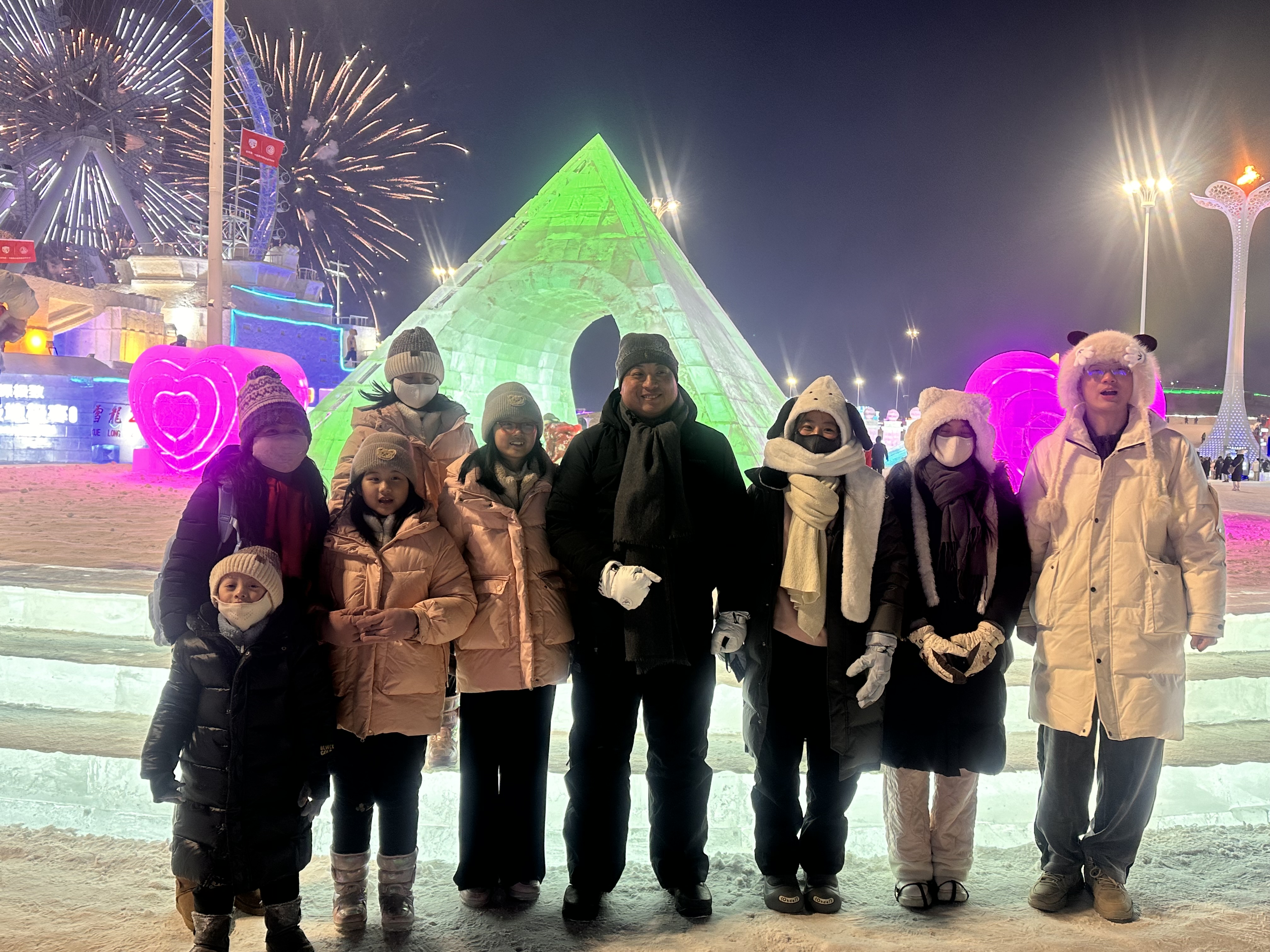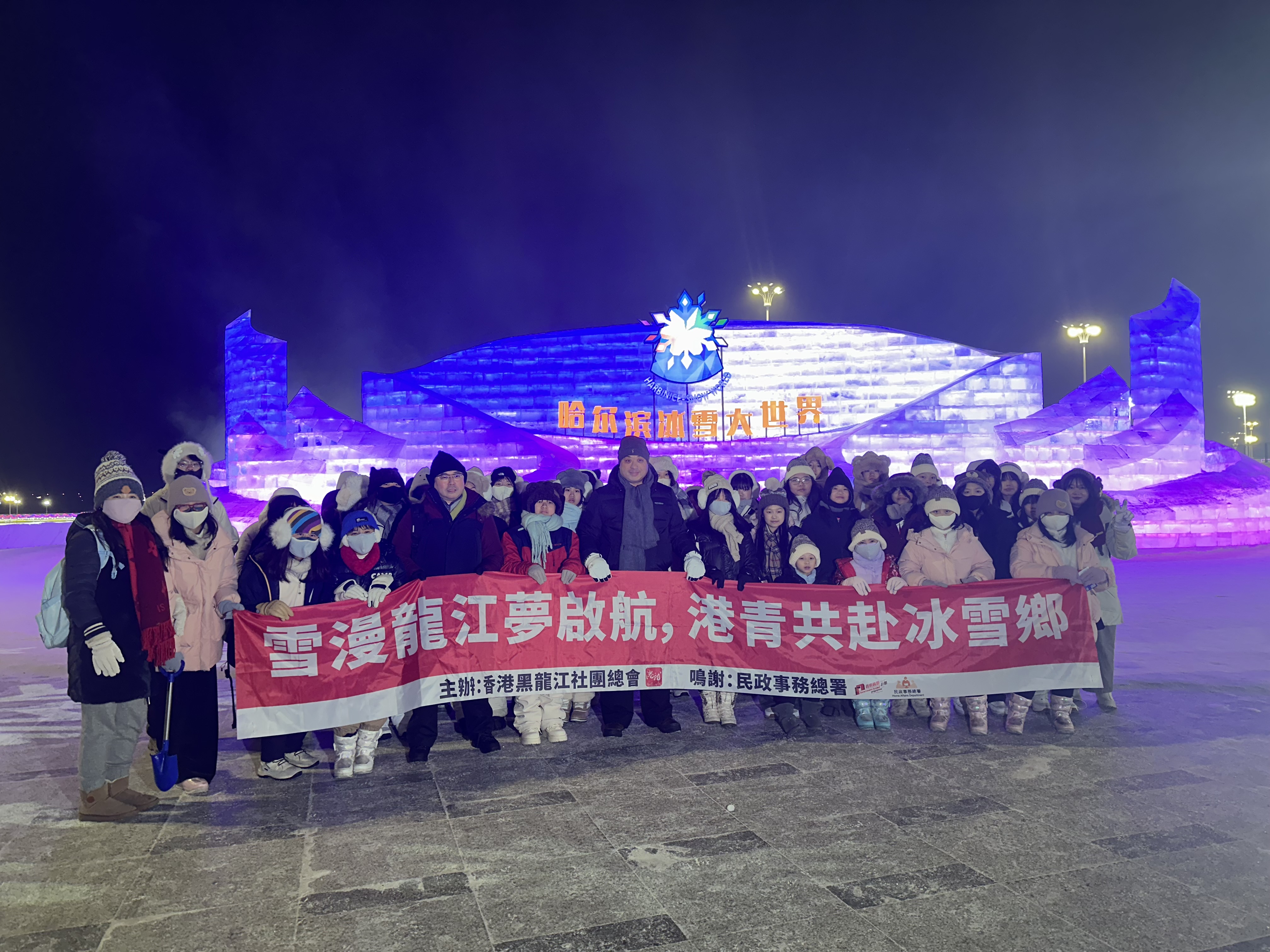31日當晚,「雪漫龍江夢啟航 港青共赴冰雪鄉」一行來到哈爾濱冰雪大世界賞冰雪盛景,打卡拍照冰雪建築,享受跨年樂趣。