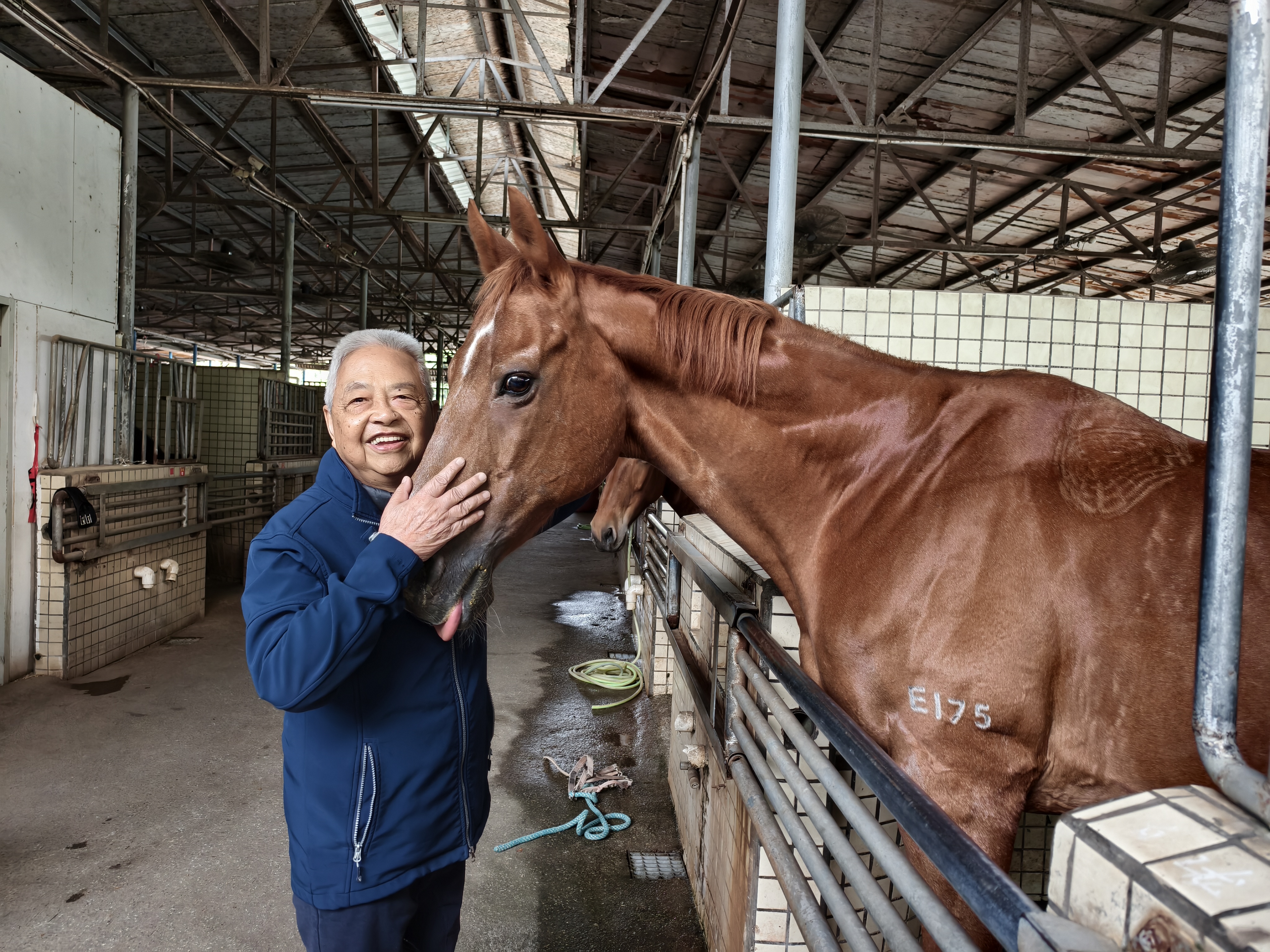 今年83歲的港人羅建南,每一次來騏驥馬術俱樂部見自己「領養」的馬兒「羅仔」時,總會用額頭碰一碰彼此,交流一下感情。他已在這裏騎馬已21年,「羅仔」也已經26歲,「我是這個馬場年紀最大的馬術愛好者,羅仔也是從香港賽馬會退休10多年、嚴重超齡的馬,我們倆很像。」羅建南每周來這裏3次,看望自己的老夥計羅仔,並和它一起在馬場散步走一走。